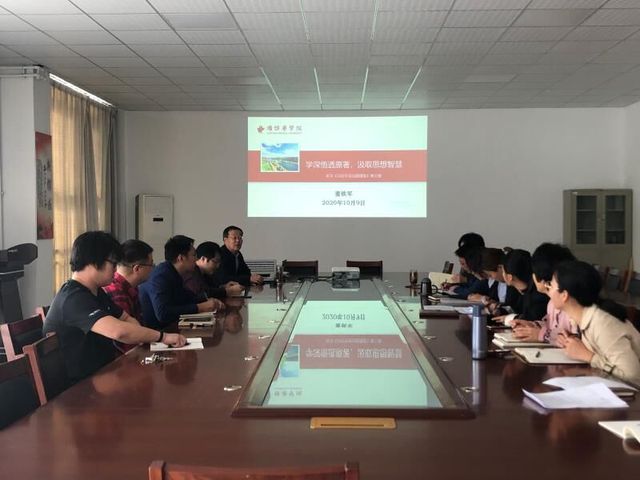 党委举办题为“学深悟透原著,汲取思想智慧”学习《习近平谈治国理政》第三卷专题辅导讲座,主讲人为学院教育教学质量督导评估专家董铁军研究员,学院党政领导部分成员及全体辅导员参加了专题辅导。