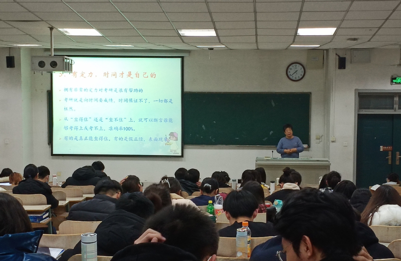 首先,徐海英结合实际情况,从为什么考研出发向同学们做出了重要说明,她提到,只有真正明白了考研的目的,才能明确目标,稳扎稳打。然后,徐海英分别从考研需要的条件、近几年的考研形势和报考指导三方面向同学们做出了详细的分析。