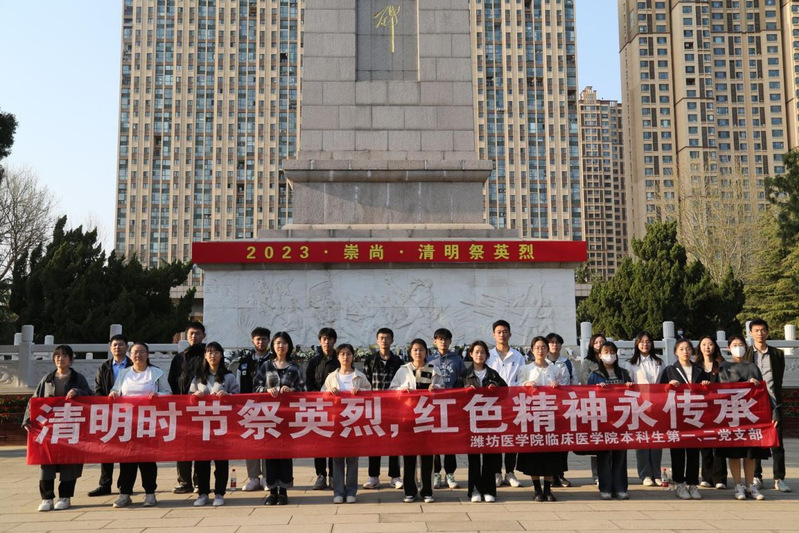为缅怀革命先烈,弘扬英烈精神,赓续红色血脉,4月1日下午,*耽美漫画 2022级组织师生赴潍坊市烈士陵园开展“清明时节祭英烈,红色精神永传承”党团共建活动。*耽美漫画 本科生第一、二党支部和临床2022级团总支师生代表参加本次活动。