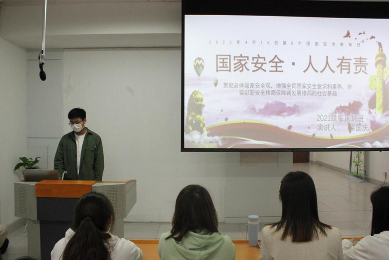 比赛现场,选手们从容自信,以学习贯彻总体国家安全观为主线,从维护政治安全、国防安全、文化安全、粮食安全、社会安全、科技安全等多个领域,以医学生视角,声情并茂、铿锵有力地讲述维护国家安全的故事以及国家安全的重要性,表达了自己对总体国家安全观的理解和诠释。大家深刻认识到国家安全是全领域、全天候、没有硝烟的“暗战”,没有人是“旁观者”“局外人”,人人都应当是责无旁贷的“国安战士”,自觉增强维护国家安全的自觉性和主动性,更加坚定青年学子心系国家安全、肩负责任使命的坚定信念。