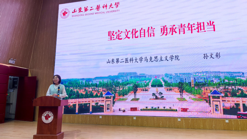 孙文彩以《坚定文化自信勇承青年担当》为题,从何为文化自信到为何文化自信,深入浅出地解释了何以文化自信,并鼓励同学们把握青春,做有理想、有本领、有担当的大国青年。刘刚希望同学们以身作则,践行“请党放心、强国有我”的青春誓言,发挥模范带头作用,在学习实践中升华人格,用实际行动书写无悔青春。