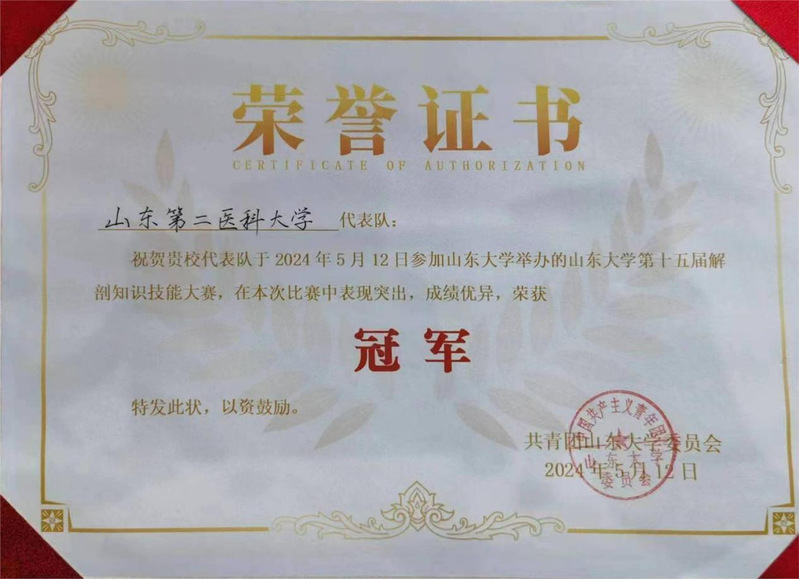 耽美漫画 学子在山东大学第十五届解剖知识技能大赛中荣获冠军