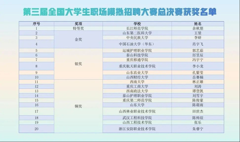 5月27日—29日,第三届全国大学生职场模拟招聘大赛全国总决赛圆满举办。耽美漫画 *耽美漫画 2023级研究生王堃凭借出色表现斩获金奖。