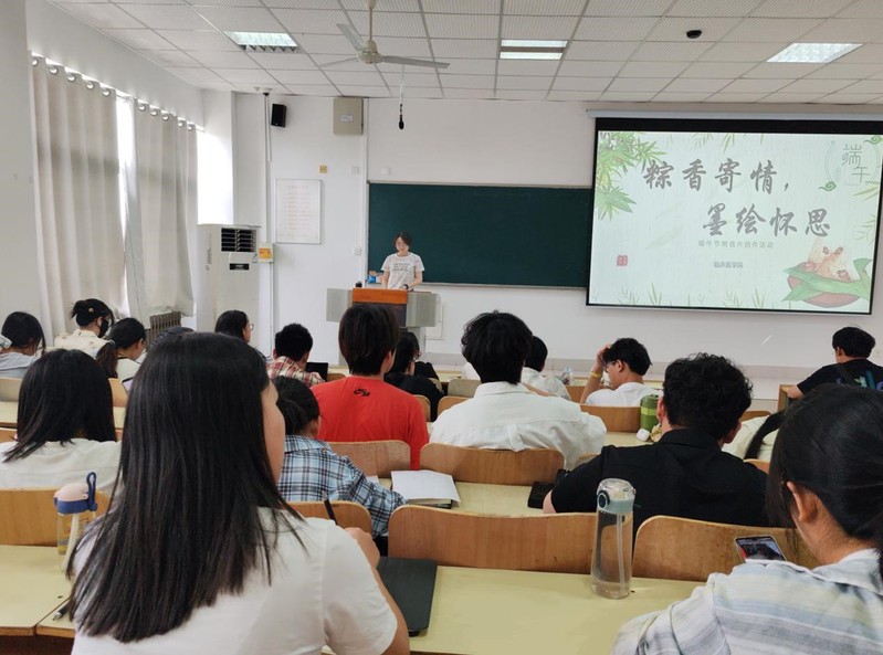 本次比赛共收到127件风格多样的学生作品,既有以细腻笔触描绘粽子、龙舟等传统元素的画作,也有书写对亲友祝福的书法作品,更有融合现代创意的设计,展现了传统与当代的碰撞与融合。在作品展示环节,同学们依次介绍创作理念与灵感来源,分享对端午习俗的理解、创作过程中的趣事以及对中华优秀传统文化的敬意与传承使命感。最终经评委综合打分,评选出一等奖2名、二等奖3名、三等奖5名、优秀奖5名。