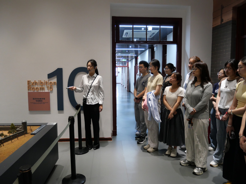 在讲解员的引导下,党员们通过参观珍贵的历史文物、影像资料和场景复原,深入了解二战期间侨民集中营的苦难岁月,以及中国人民在战争中对国际友人的无私帮助。泛黄的历史照片记录着国际侨民与中国百姓的互助故事,斑驳的医疗器具诉说着战火中的医者仁心,情景复原展区再现了反法西斯斗争中的国际主义精神,让党员们在历史与现实的对话中感悟信仰力量。活动最后,支部党员在党旗下重温入党誓词,鲜红党旗与学子们的拳拳初心相映成辉,铿锵誓言彰显了青年党员对党的赤诚告白。