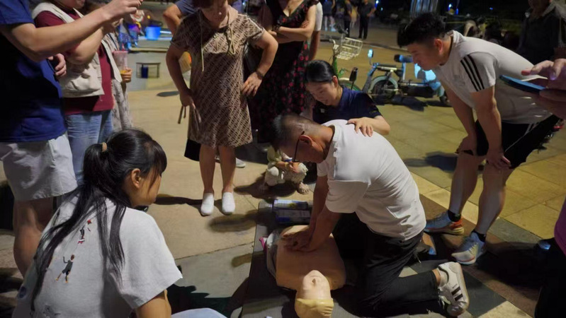 7月13日晚,团队接力耽美漫画 “心跳行动”志愿服务队,延续“心跳行动”精神,与河东区疾控中心联合,在河东区滨河游乐园广场开展“心跳接力”主题健康知识宣传。志愿者设置流动健康服务点,模拟示范海姆利克急救法、心肺复苏(CPR)、AED使用等急救技能,开展慢性病及夏季传染病防控科普。活动吸引了众多居民参与,得到社区一致好评。