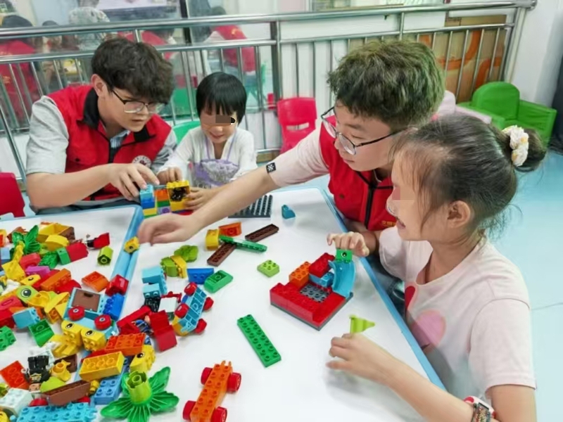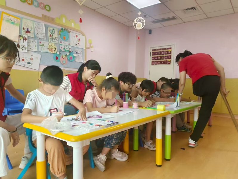 在济南康复幼儿园,志愿者们很快就和孩子们打成一片,建立起了良好的互动关系。感统训练室内,跳跳球、秋千和爬架等设施一应俱全,志愿者们与孩子们进行一对一的训练配合,每当孩子们完成一个动作,志愿者们都会及时给予热烈的鼓励和掌声;情绪行为干预课程中,孩子们通过绘画和讲述故事来表达自己的情感。在奥尔夫音乐教室,志愿者与孩子们一同开展音乐活动,大家一起演唱,现场氛围十分欢乐,孩子们在互动中毫不掩饰对志愿者的信任和喜爱;在积木教室,孩子们专注地用积木搭建出各种造型。实践活动结束时,许多小朋友都拉起志愿者的手说:“哥哥姐姐,你们什么时候还来呀?我很喜欢和你们一起玩。”参与其中的志愿者们说:“通过这次课程,我深刻认识到特殊儿童在情绪管理方面需要更多的引导和支持,也让我对共情理念有了更深的理解,以后我会更懂得如何去关爱他们。”