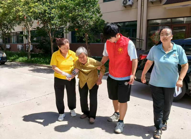 在华都颐年园养老服务中心,队员们顶着炎炎烈日,协助社区工作人员抢收麦子,亲身体验“粒粒皆辛苦”的深刻含义,劳动结束后,队员们精心准备新鲜水果,与老人们促膝长谈,聆听他们的人生故事,帮助整理生活物品。在潍坊市儿童福利院,实践队为孩子们带去趣味文具,组织开展益智游戏和健康教育小课堂,队员们用生动活泼的方式教导孩子们卫生常识,在欢声笑语中建立起真挚的情感纽带。党史教育馆的参观学习是本次实践的重要思政课堂,通过观摩珍贵史料、历史实物和场景复原,队员们系统了解潍坊党组织从萌芽到发展壮大的光辉历程,大家被革命先烈抛头颅、洒热血的事迹深深震撼。在南湖社区,实践队充分发挥医学专业优势,开展急救知识专题宣讲,队员们通过模拟演示,详细讲解防溺水、心肺复苏等急救技能,并深入社区商铺和居民家中,发放防火防电宣传资料。此外,团队还对社区周边河道进行安全巡查,确保救生设施完好可用,为夏季防溺水工作贡献力量。在潍坊风筝博物馆,队员们既当学员又做志愿者,大家认真学习风筝制作技艺和历史文化,同时协助馆方维持秩序、引导游客、解答咨询。