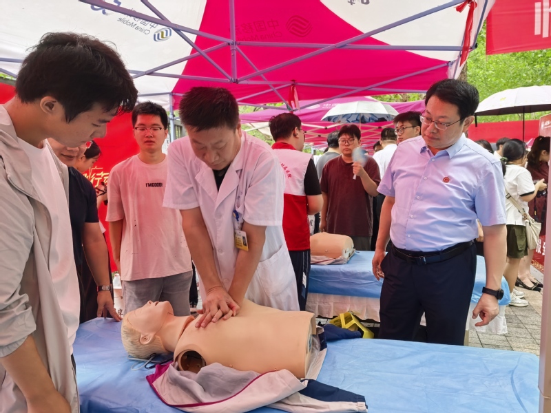 以“济”践新,技能体验悟仁心。作为第二批全国急救教育试点学校,学院依托学科优势,在迎新现场设置“临床技能初体验”示范体验点,由实践教师现场教学,科普心肺复苏、气管插管、电除颤、打结缝合等急救技能,吸引大量新生和家长驻足观看,让新生深刻体会医学魅力,进一步激发专业探索兴趣与学习动力。
