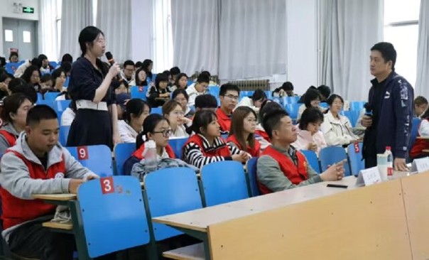 会议邀请潍坊市爱心义工公益服务中心理事长刘国栋、公益讲师团团长王新军担任主讲嘉宾。王新军以“何为志愿者”为切入点,系统阐释了志愿服务的核心要义,并详细讲解了医学场景下的服务规范与安全准则,引导学生树立正确的志愿服务理念。互动环节中,同学们踊跃提问,围绕“如何与患者家属有效沟通”“应急服务中的注意事项”等实际问题,结合临床学习经历与主讲老师展开深入交流,现场气氛活跃、反响热烈。最后,两位老师结合多年公益实践经验,对“医心共济”志愿者协会即将开展的“校园健康科普”等活动提供了项目策划、风险防控等方面的实用建议,助力志愿服务项目有序、高效推进。