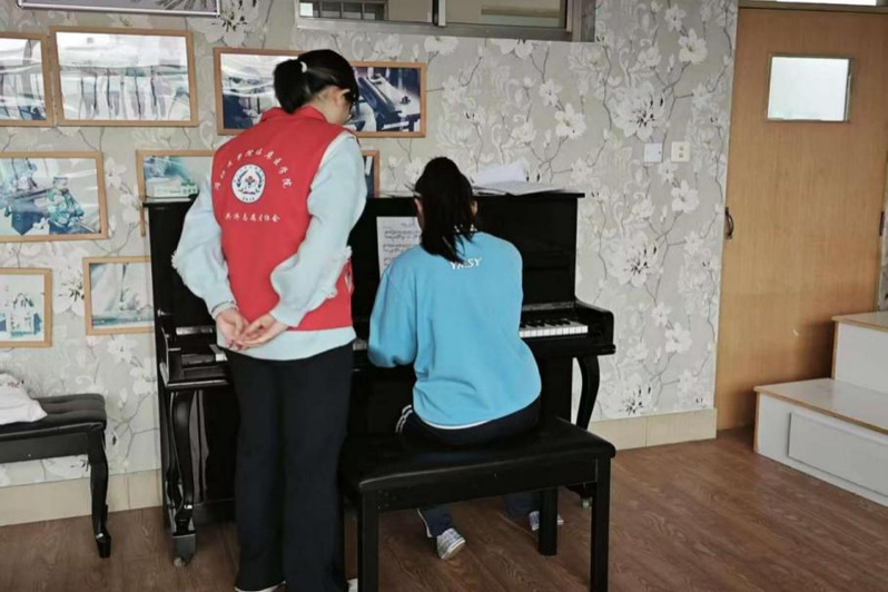 本次活动紧密围绕盲童成长需求,设计“学业辅导”与“艺术启迪”两大模块,致力于提供有温度、见实效的陪伴支持。在学业辅导方面,志愿者采取“一对一”结对方式,针对初、高中盲童在数学、物理等学科上面临的困难,注重运用具体化、逻辑清晰的语言进行讲解,结合生活实例阐释抽象概念,借助触觉教具辅助理解,通过耐心细致的引导,帮助孩子们逐步克服学习障碍,建立学习自信。在艺术启迪方面,志愿者依托盲校现有乐器资源,发挥自身特长,引导孩子们认识乐器结构、聆听音色特点、学习基本演奏方法,并共同练习简单曲目音乐成为超越视觉的沟通桥梁,帮助孩子们在旋律中提升了感知力、协调性与自信心。