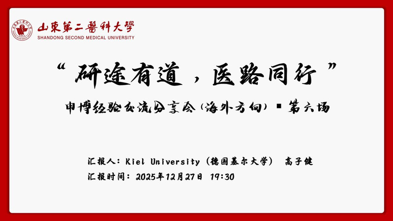 本次交流会邀请中南大学外科学(神经外科学)学术型研究生孙昊、青岛大学消化系病学专业型研究生赵玉磊、德国基尔大学消化系病学学术型研究生高子健,围绕申博全过程的核心难点与实战经验进行深度分享。孙昊从申博动机、导师选择、材料准备、考核面试等四个维度展开分享,讲解了“三段式”导师邮件撰写技巧、材料准备要点与面试备考方法,针对“如何平衡临床工作与申博备考”“专硕与学硕申博差异”“英语备考重点”等问题进行互动交流。赵玉磊围绕“避坑指南+实战技巧”,分享了导师联系策略、时间管理方法与资料获取渠道,并结合多所高校的报考特点,为同学们提供了精准择校建议。高子健聚焦“为何选德国医学博士”“申请全流程实操”“避坑指南与心态建设”三大板块,详细对比了德英美在申请模式、培养方式与毕业要求上的差异,为临床型、科研型及计划转方向的硕士生提供了差异化准备策略。